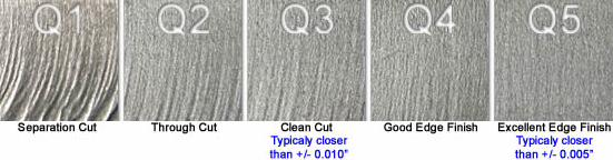 Taper and edge finish are a direct result of cut speed. The faster the speed, the more course the edge. A smooth edge finish requires more time for a controlled cut.